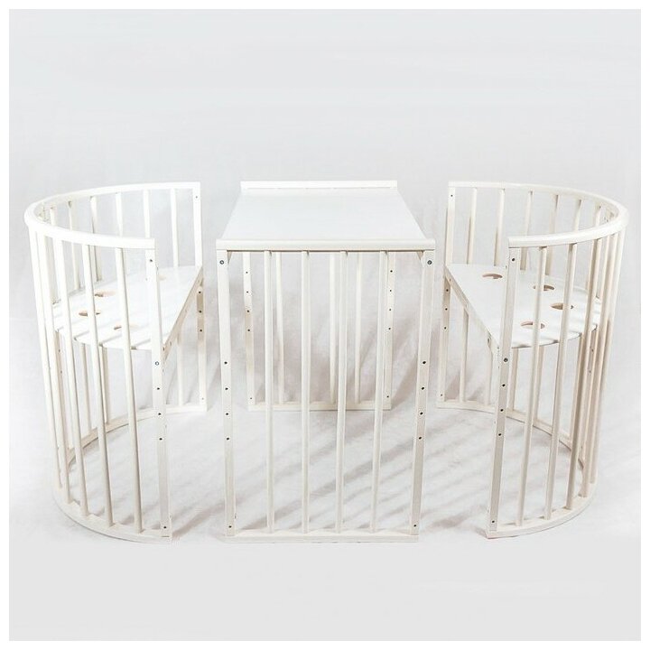 Купить Кроватка-трансформер "Лёвушка" 7 в1, слоновая кость, круглая / овальная