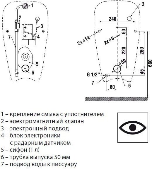 Писсуар Jika Golem 4307.0 подвесной, с радарным датчиком 8.4307.0.000.483.1