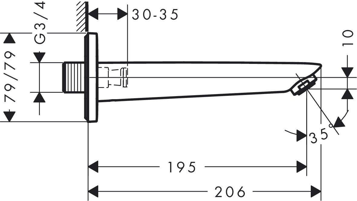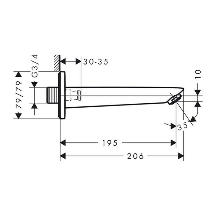HG Logis Излив для ванны, настенный 195мм, цвет: хром