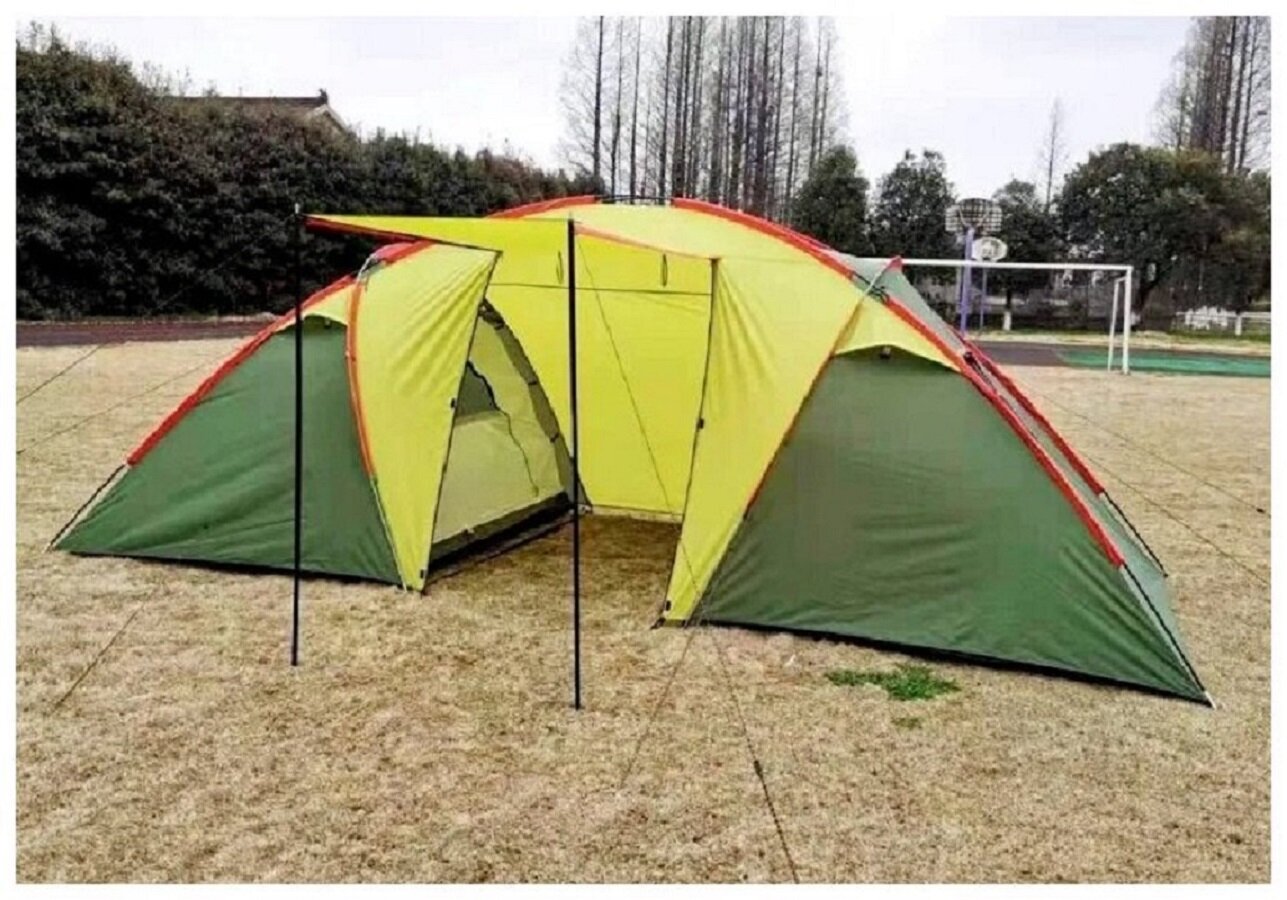 палатка шатер 4-местная, 2 отдельных комнаты, (2 слоя) дуги стекловолокно, вес 8.9 кг. ART1002-4 (Зеленая)