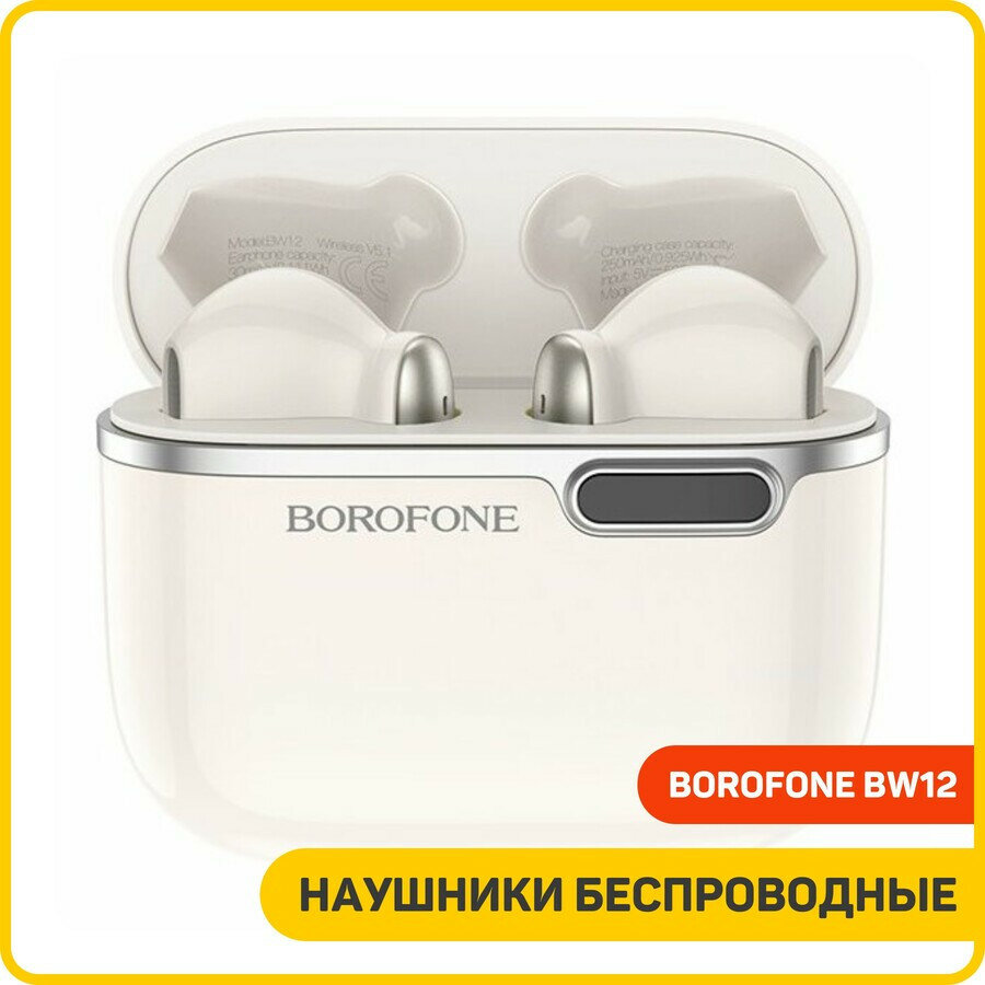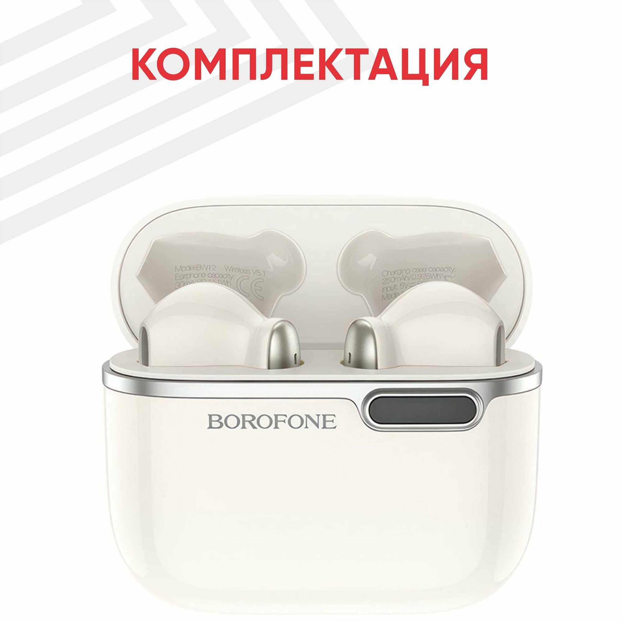 Беспроводные TWS наушники Borofone BW12 Leisure с индикатором заряда батареи, Bluetooth 5.1, вкладыши, белые