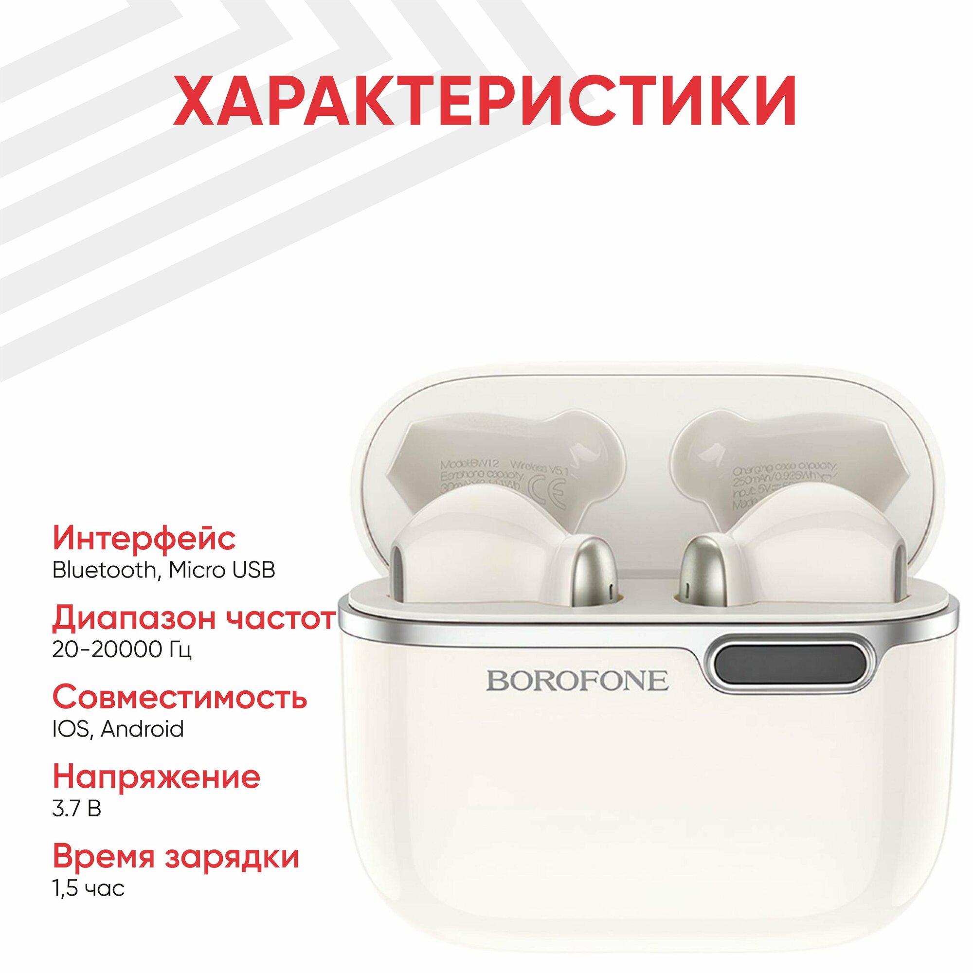 TWS Bluetooth гарнитура BOROFONE BW12 Leisure BT 5.1, вкладыши (белый) интересное: