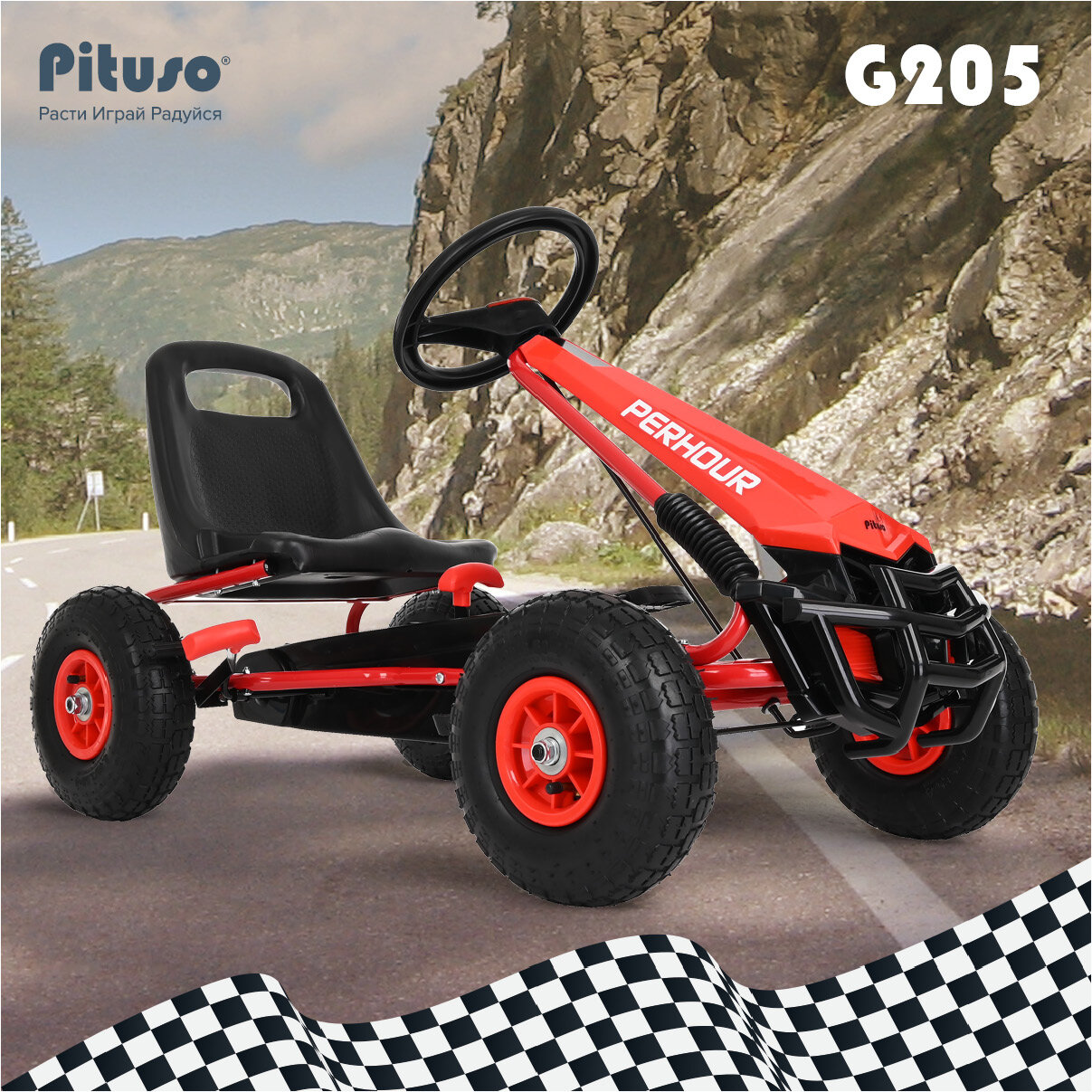 Веломобиль детский педальный, картинг Pituso "G205", четырехколесный, одноместный, надувные колеса, ручной тормоз, регулировка сиденья, с педалями, цвет красный