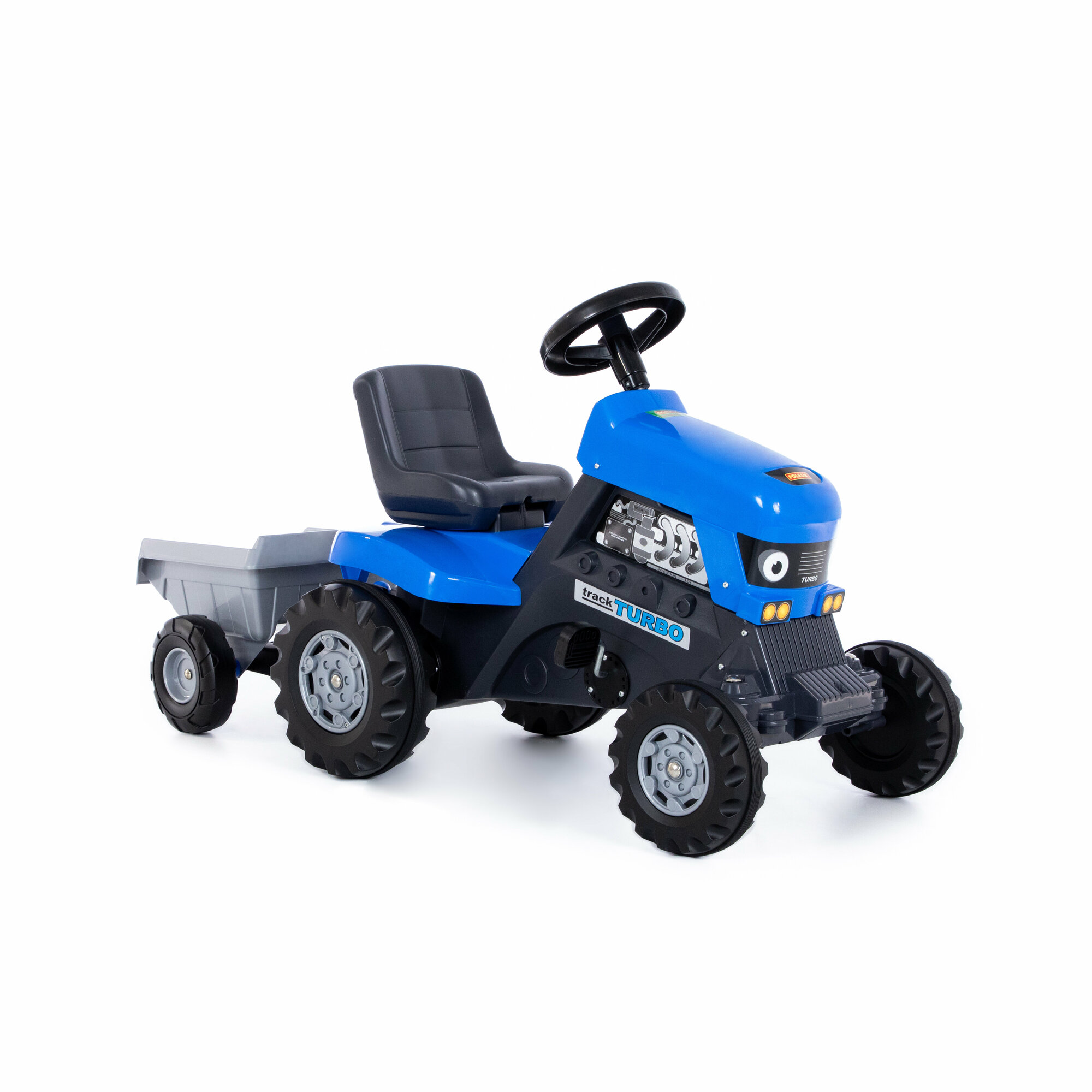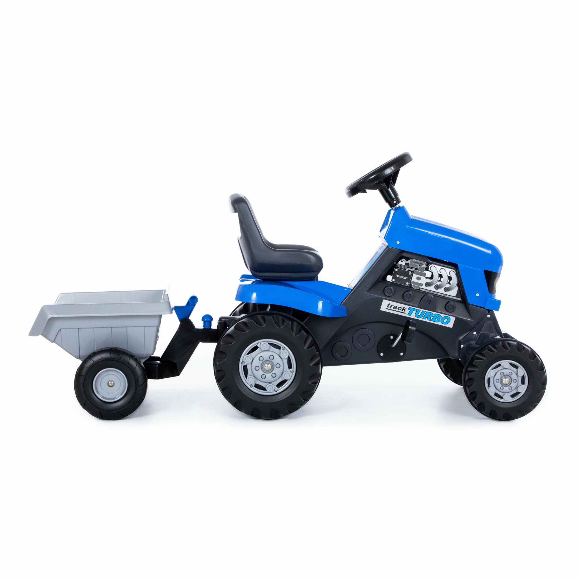 Каталка-трактор Полесье Turbo, с педалями, синяя, с полуприцепом