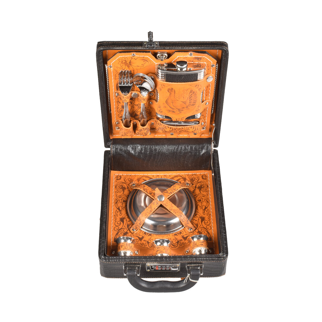 | Дополнительная информация | По 3шт:Вилки,ложки,тарелки,стопки,фляга, встроенный столик в чемодан. |