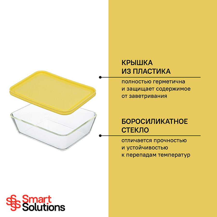 Контейнер для еды стеклянный 700 мл Smart Solutions, желтый интересное: