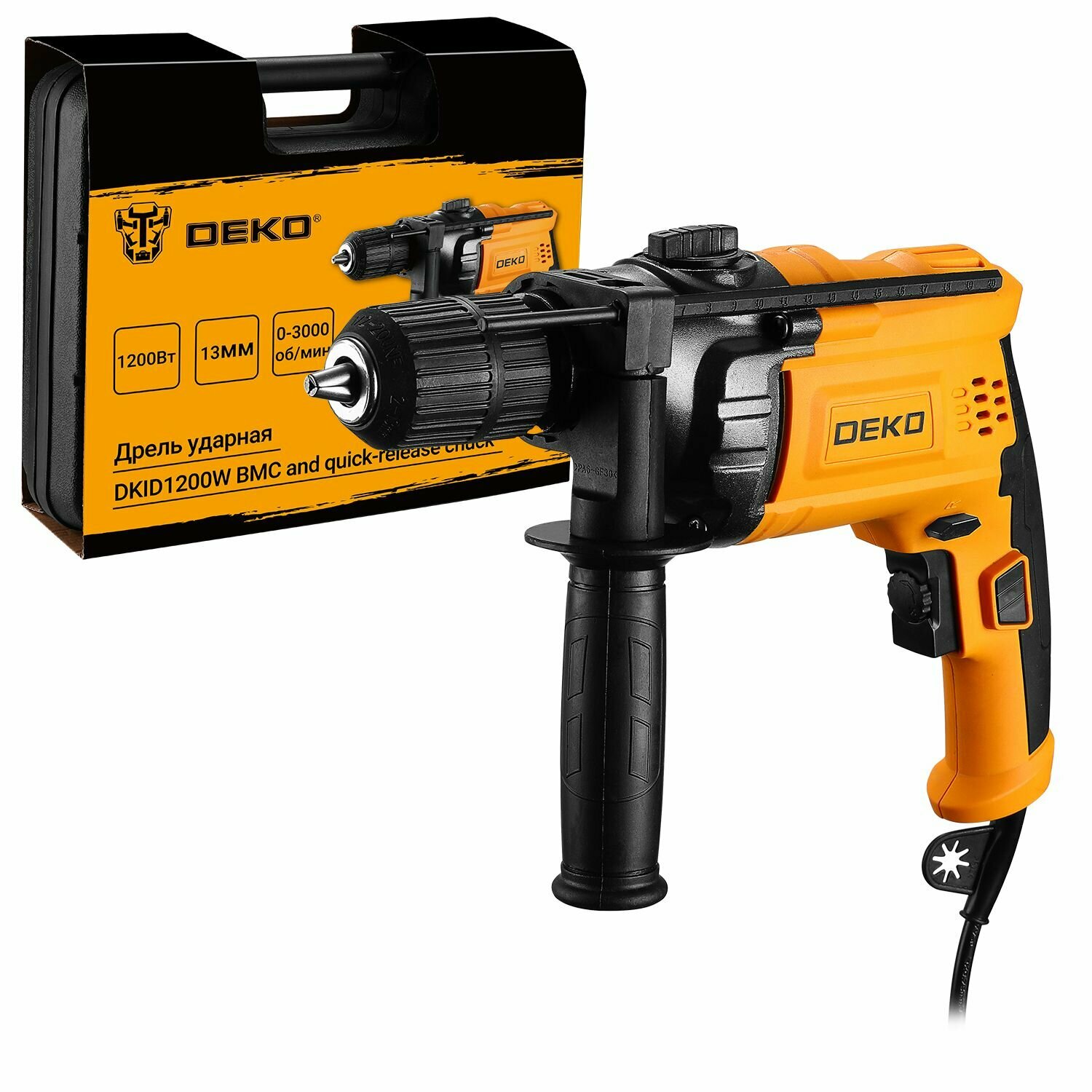 Дрель ударная DEKO DKID1200W сетевая, с быстрозажимным патроном