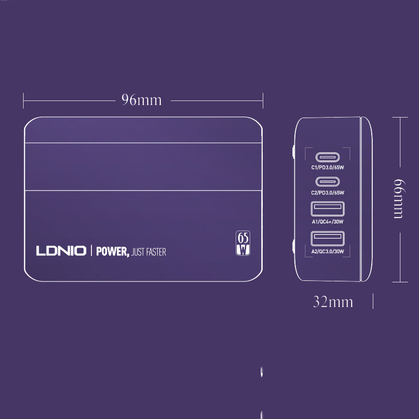 Зарядное устройство LDNIO 65W USB C, EU
