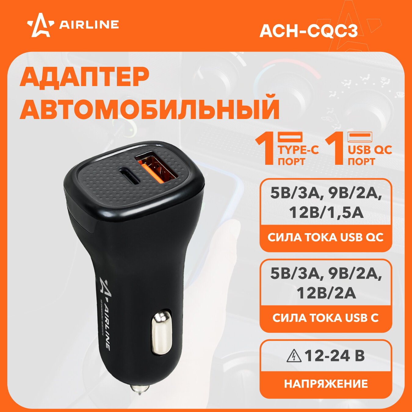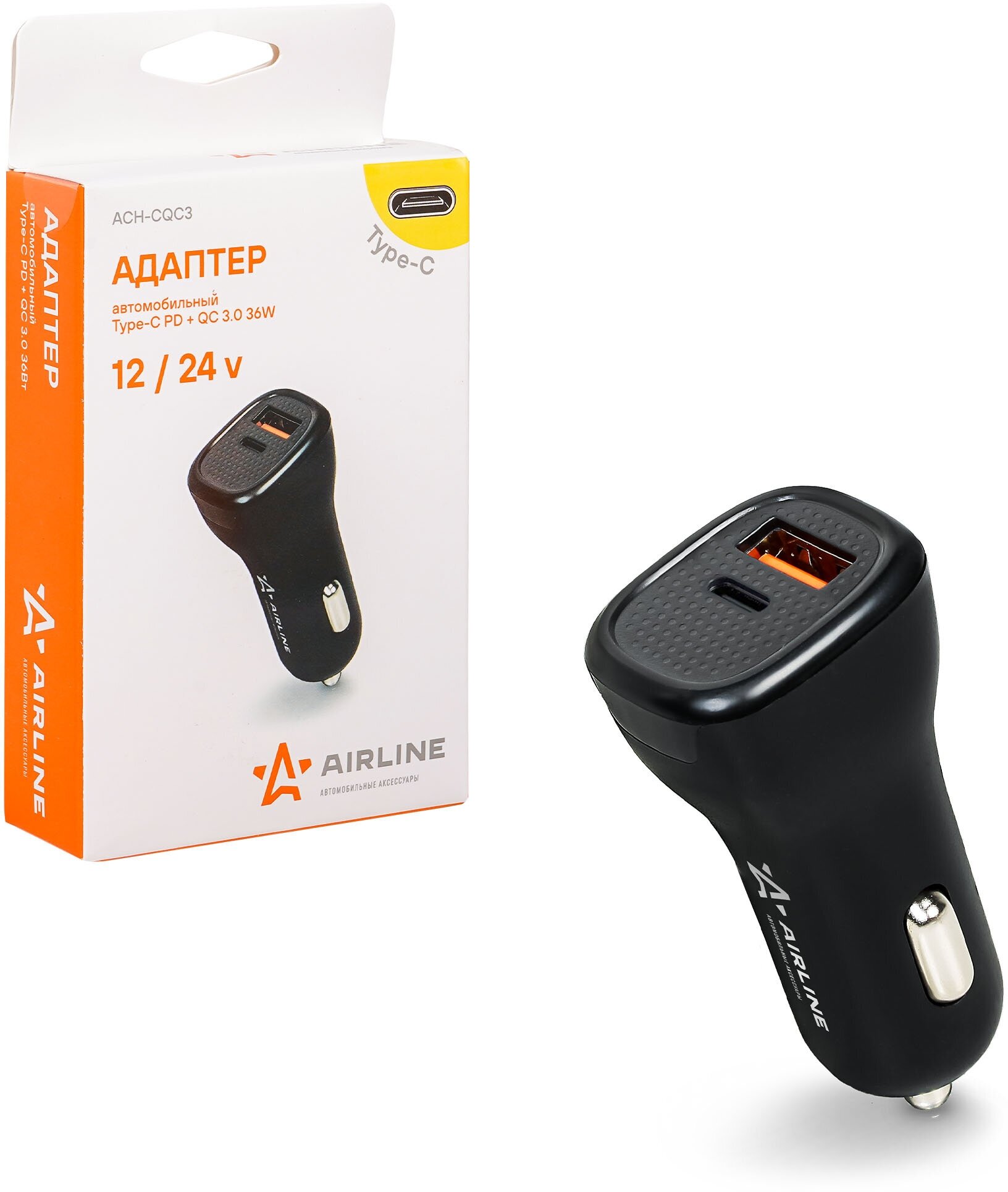 AIRLINE ACH-CQC3 Адаптер автомобильный Type-C PD + QC 3.0 42Вт макс. 5-12В 3А макс. 12/24В (ACH-CQC3)
