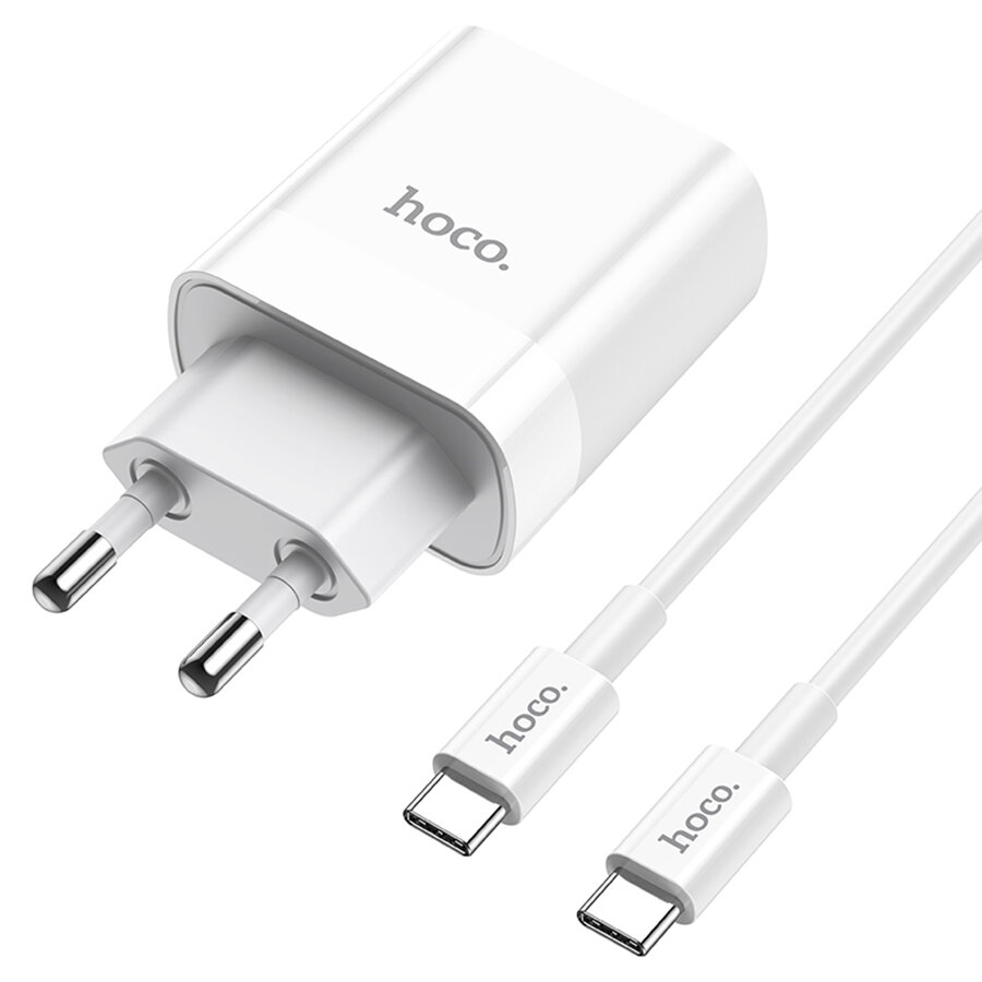 Сетевое зарядное устройство, 1 USB 3.0 QC+1 PD 20W (C80A), HOCO, Type-C to Type-C, белый