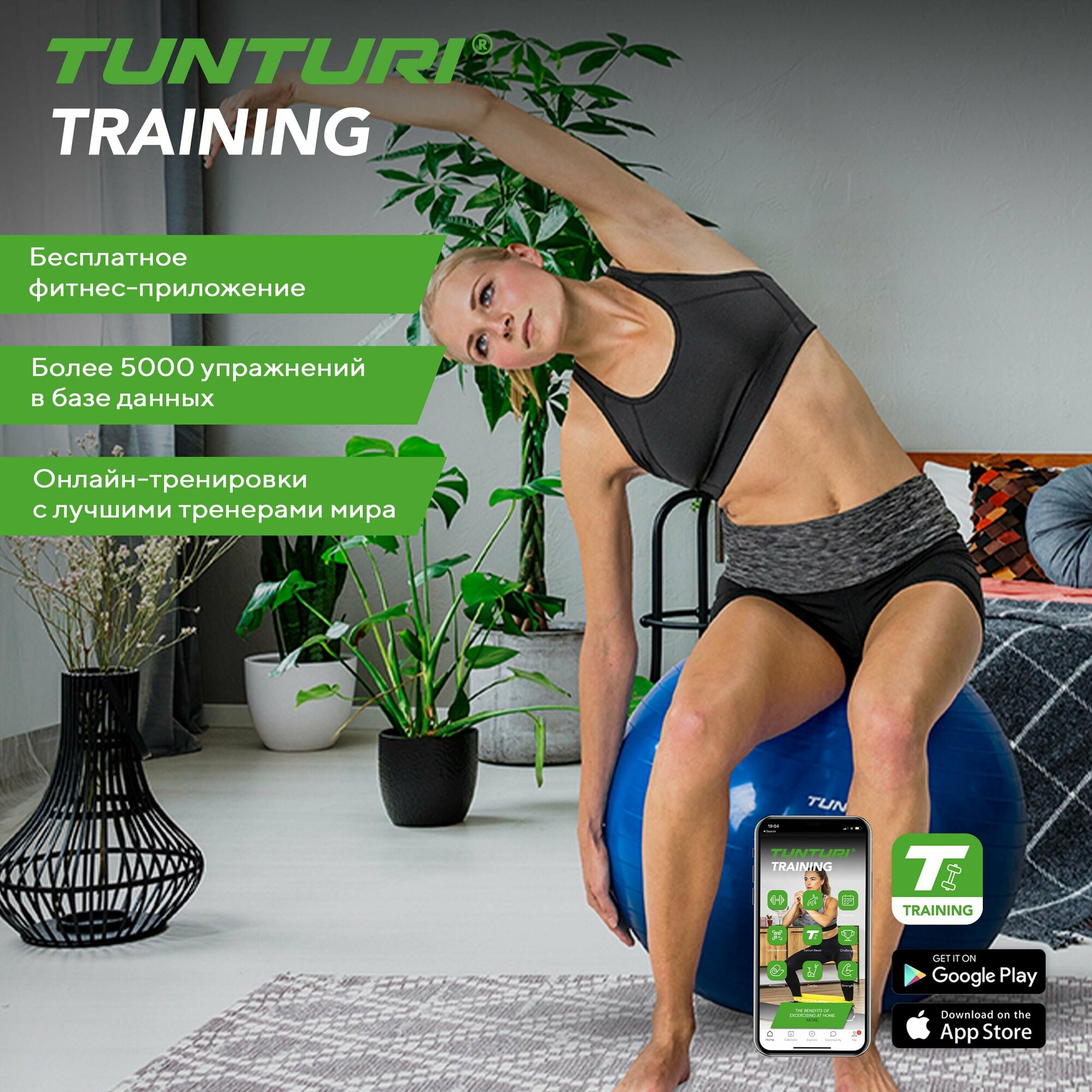 Фитбол Tunturi Gymball, 65 см, черный, с насосом интересное:
