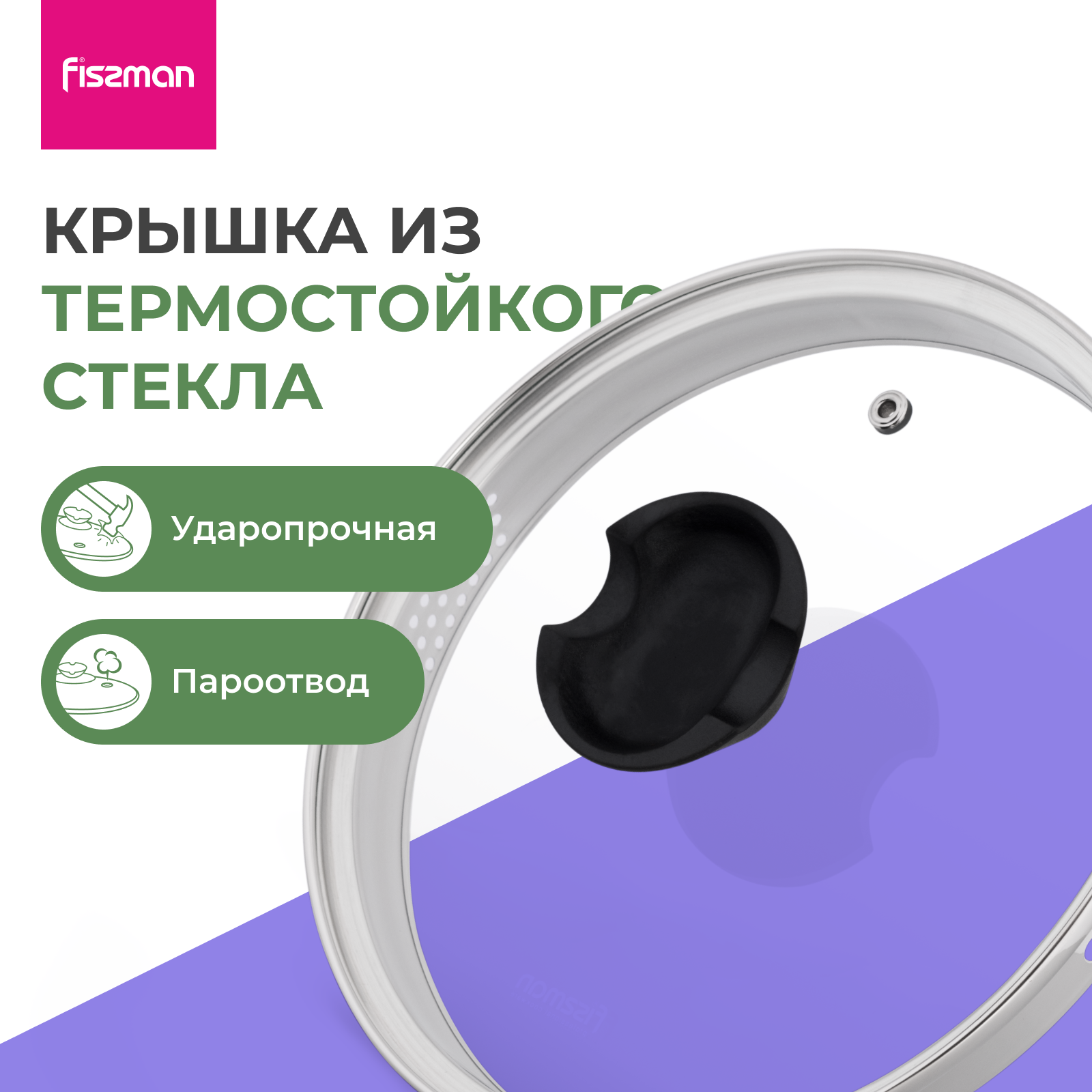5248 FISSMAN Кастрюля TITANIA 4,5л; 22x13 см с крышкой (нерж. сталь) Ручки-бакелит; Крышка-стекло; Индукция; Термоаккумулирующее многослойное дно.