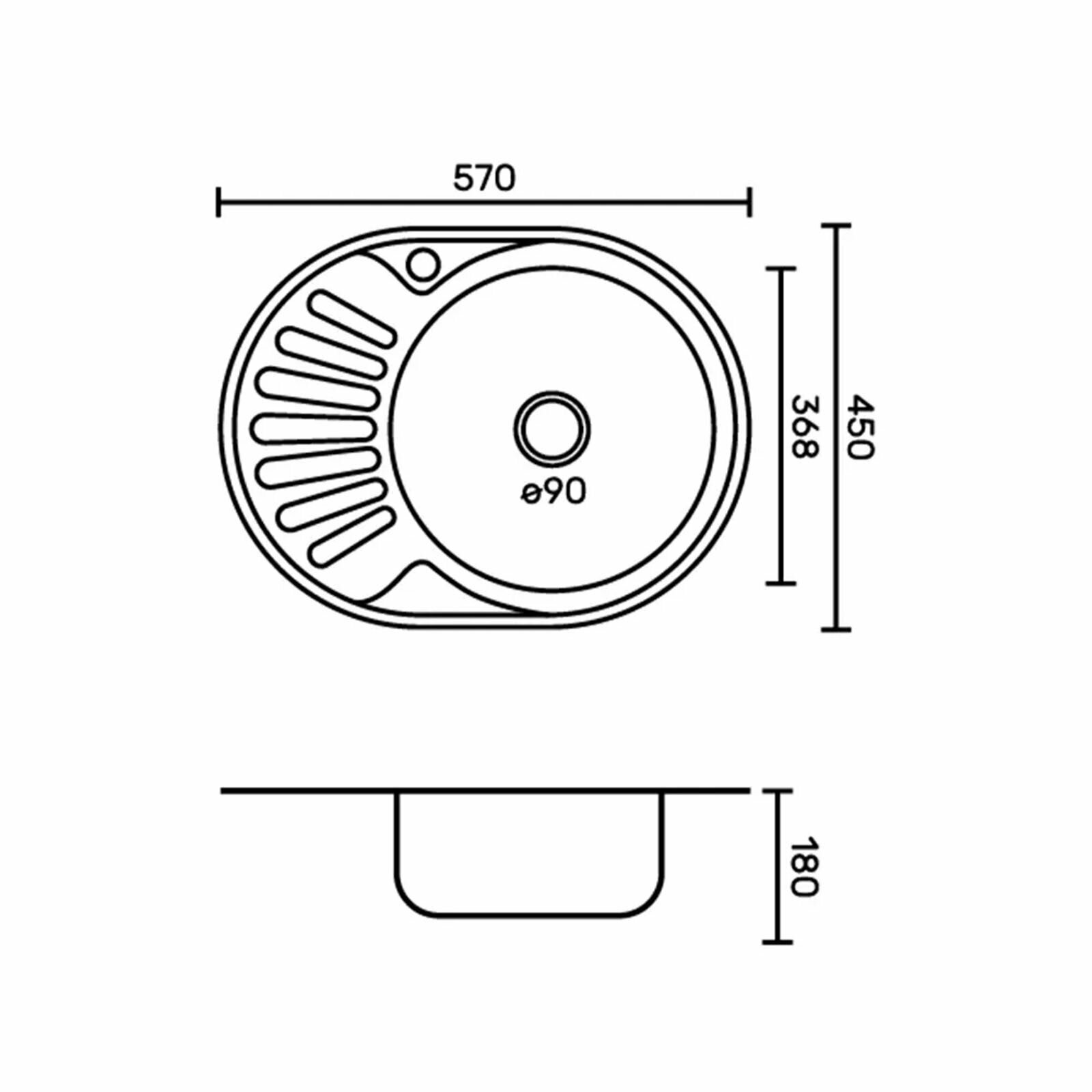 Мойка кухонная, врезная, с сифоном, 57х45 см, правая, нержавеющая сталь 0.6 мм