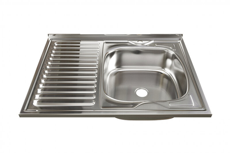 Мойка кухонная 527971, накладная, толщина 0.4 мм, 80х60х16 см, правая, выпуск 1 1/2"