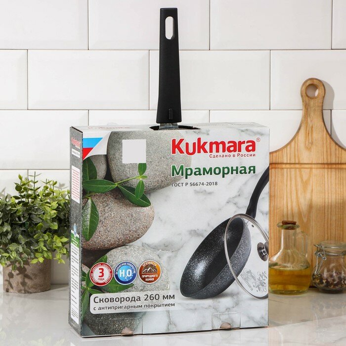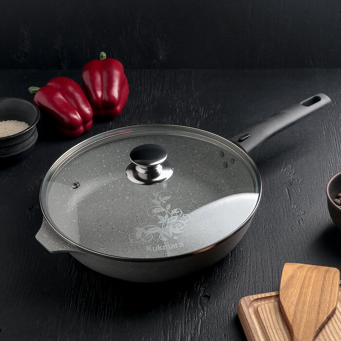 Сковорода «Светлый мрамор», d=26 см, антипригарное покрытие, съёмная ручка, стеклянная крышка интересное: