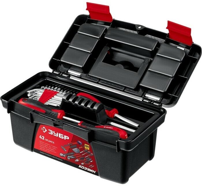 Для слесарных, ремонтных и точных работ ЗУБР Хозяин-42 22105, 42 предм., черный/красный