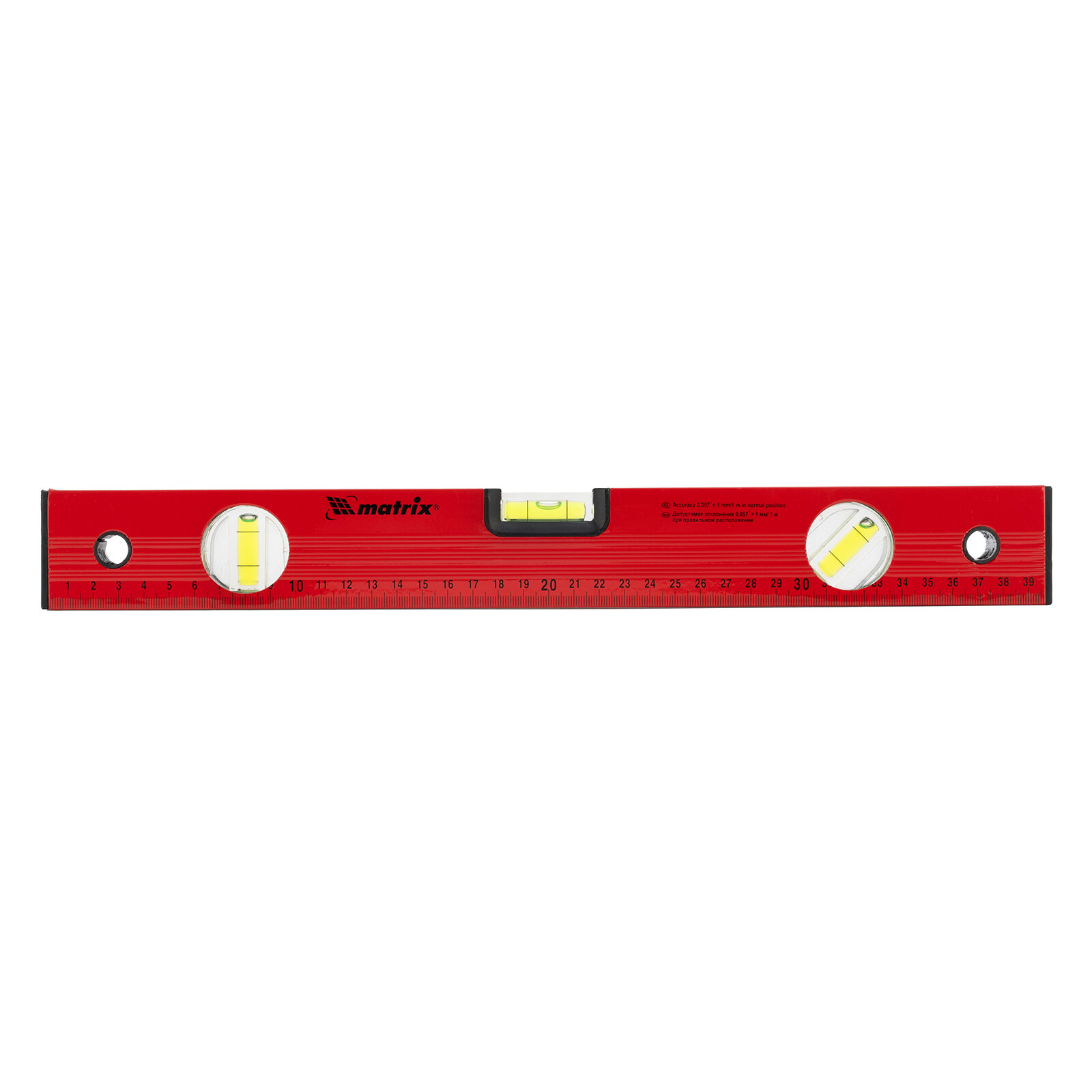 Уровень алюминиевый, 400 мм, 3 глазка, красный, линейка, MATRIX 33220