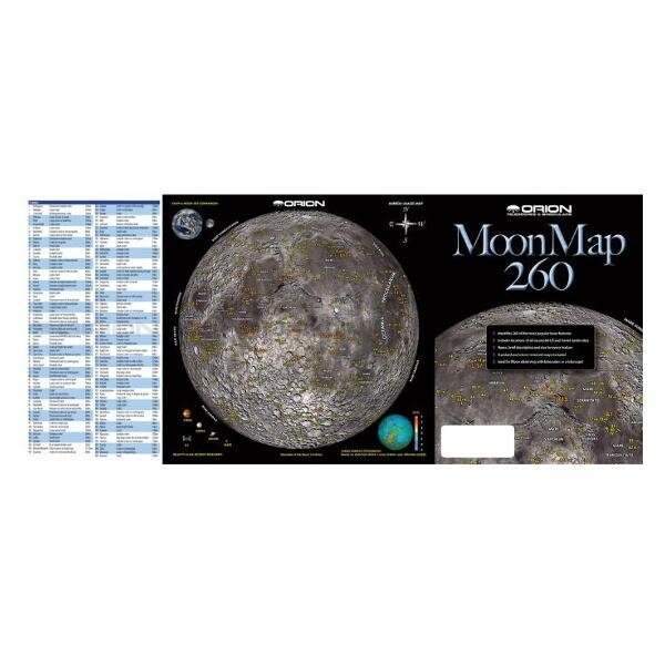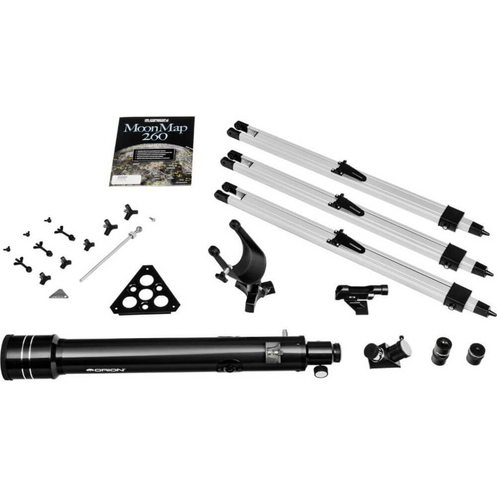 | Комплектация | Оптическая труба Orion 70 мм, f/10 Окуляр Kellner 25 мм (1.25") Окуляр Kellner 10 мм (1.25") Диагональное зеркало 90° Альт-азимутальная монтировка Алюминиевая тренога Контейнер для аксессуаров Карта лунной поверхности Orion MoonMap 260 |