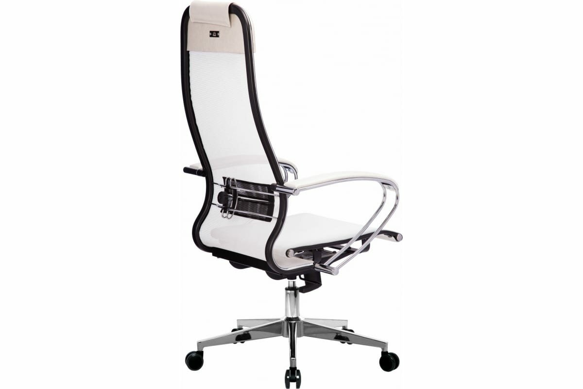 Купить Кресло офисное Метта К-4-т хром, прочная сетка, сиденье и спинка регулируемые, белое