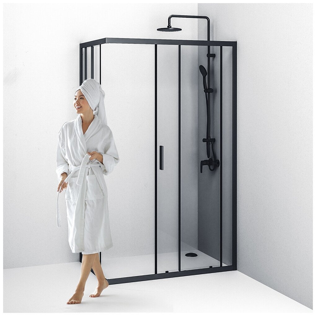 Душевое стеклянное ограждение без поддона Am.Pm Gem W90G-404-120290-BT 120*90 , душевой уголок 120 на 90 , профиль черный матовый, стекло закаленное прозрачное, гарантия 3 года, Германия