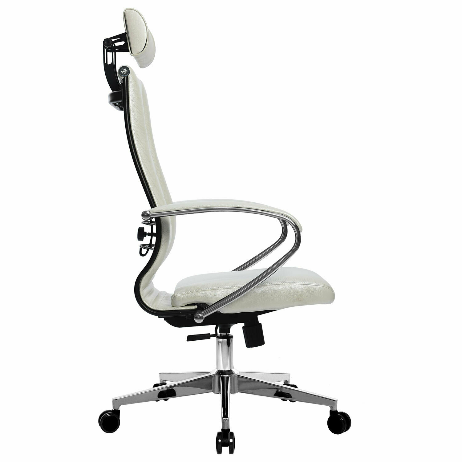 Кресло офисное метта "К-34" хром, экокожа, подголовник, сиденье и спинка мягкие, белое