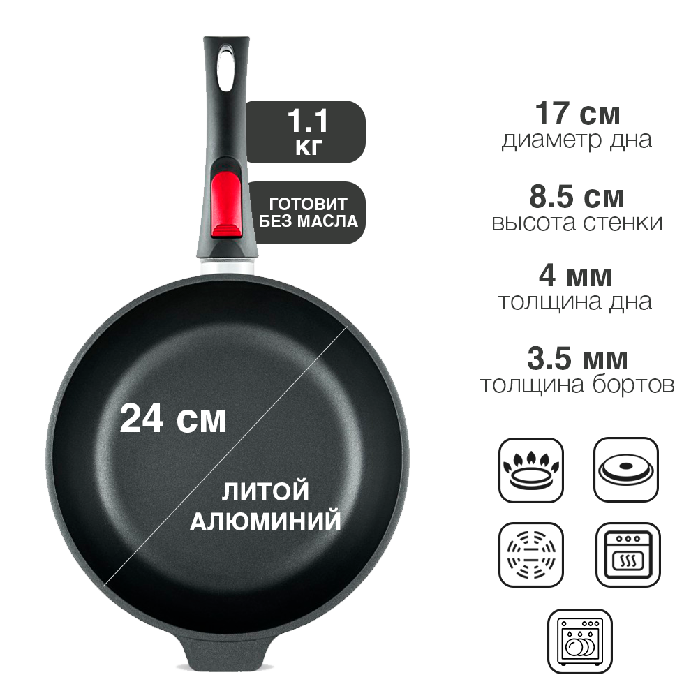Сотейник 24 см литой высокий съем/ручка