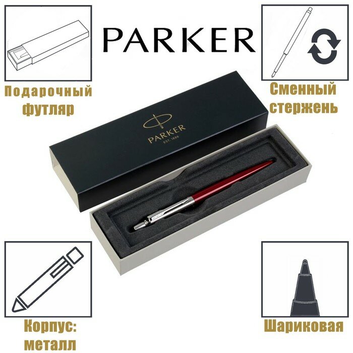 Ручка шариковая Parker Jotter Core Kensington Red CT M, корпус из нержавеющей стали, красный глянцевый- хром, синие чернила интересное: