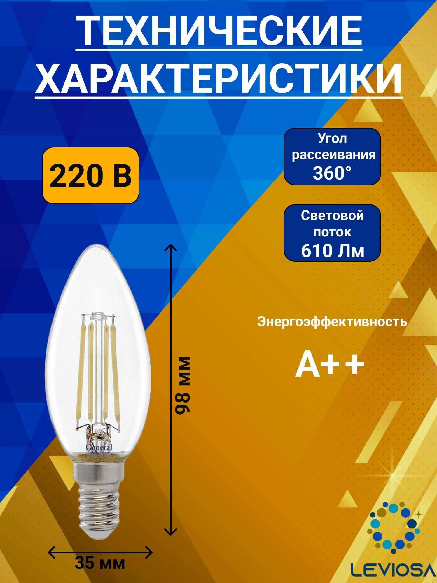 General, Лампа светодиодная филаментная, Комплект из 10 шт., 8 Вт, Цоколь E14, 2700К, Форма лампы Свеча интересное: