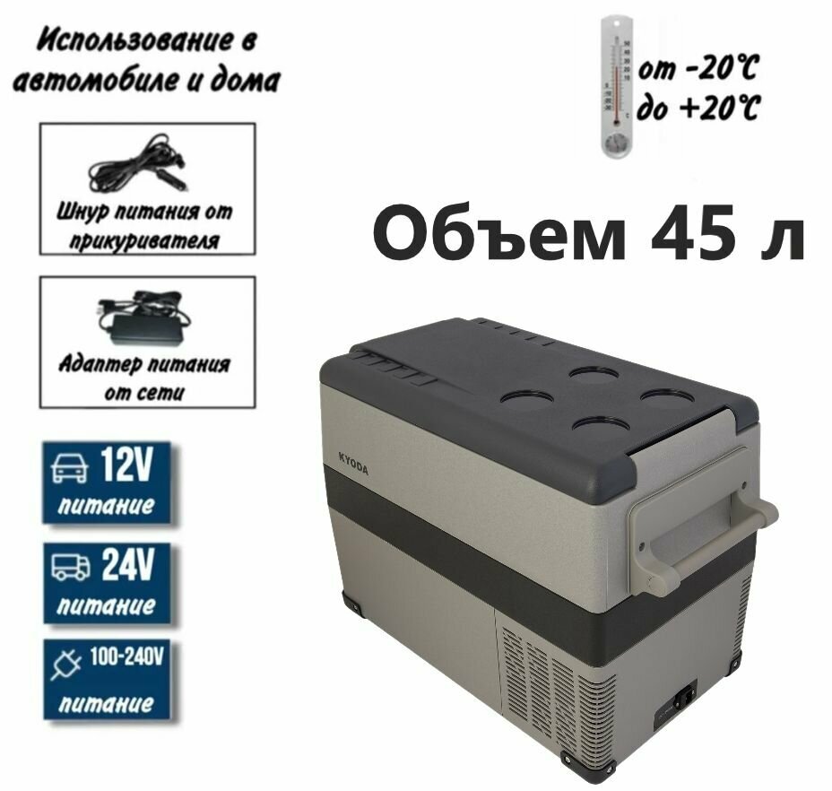 Автохолодильник Kyoda CF45H, двухкамерный, объем 45 л, вес 12,9 кг интересное:
