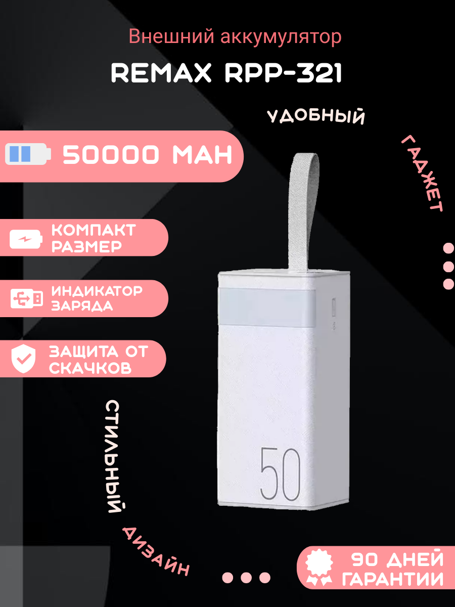 Внешний аккумулятор Remax 50000 mAh RPP-321 белый PD20W+QC 22.5W