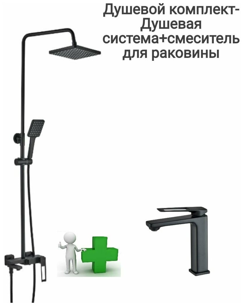 Купить Душевой комплект-душевая система с тропическим душем и смеситель для раковины, черный/матовый