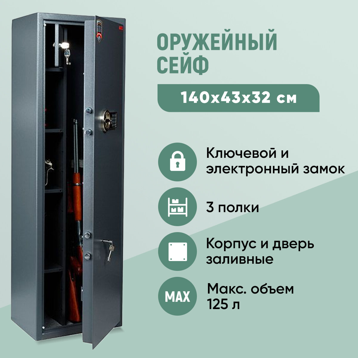 Сейф AIKO "Беркут", оружейный, с полочками, ключевой замок, серый