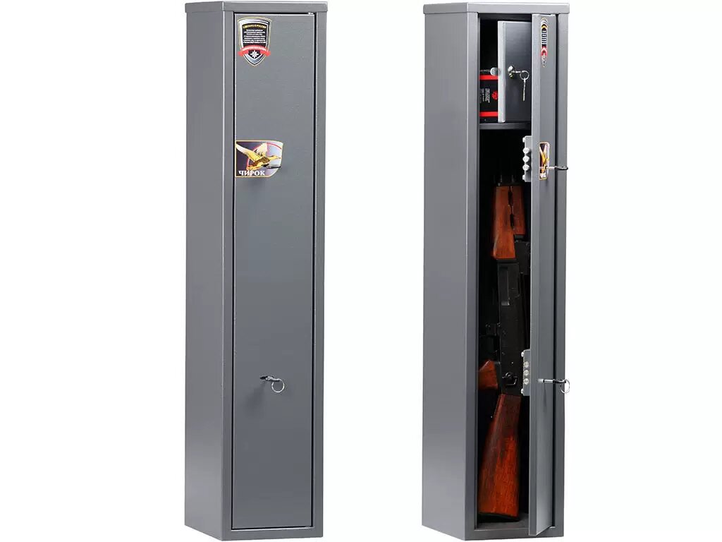 Оружейный сейф на 2 ствола AIKO Чирок 1325, с трейзером, максимальной высотой ружья до 130см, 1330x200x250мм