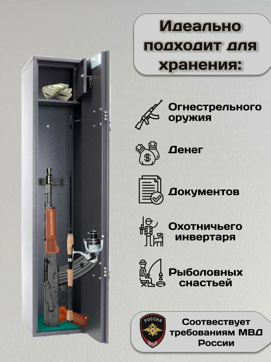 Сейф оружейный "Чирок 1528" (1500х300х285мм) (Ключевой замок) (Высота ружья до 148,4см)