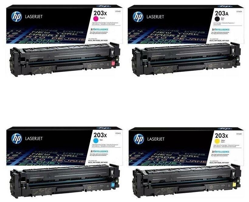 Купить HP Картриджи комплектом HP CF542X-CF543X-CF541X-CF540A 203X, 203A полный набор