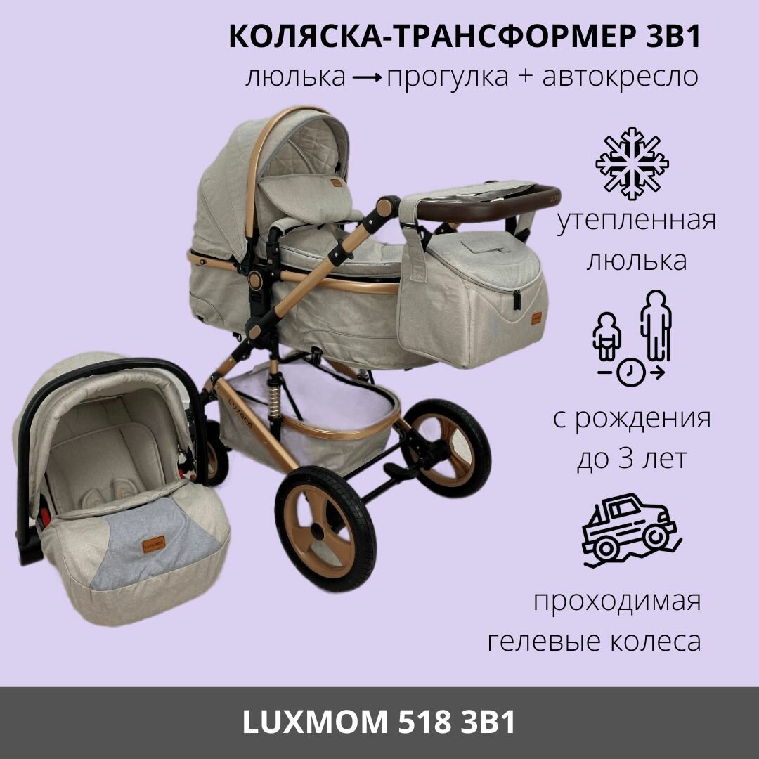 Детская коляска-трансформер 3 в 1 Luxmom 518, бежевый интересное: