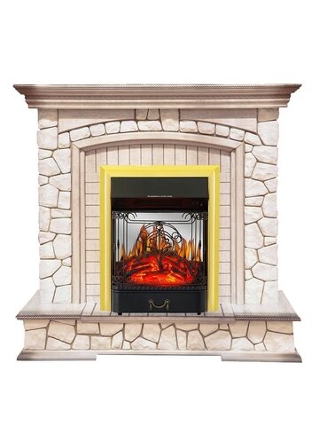 Купить Электрокамин Royal Flame Preston (слоновая кость с патиной) с очагом Majestic FX M Brass