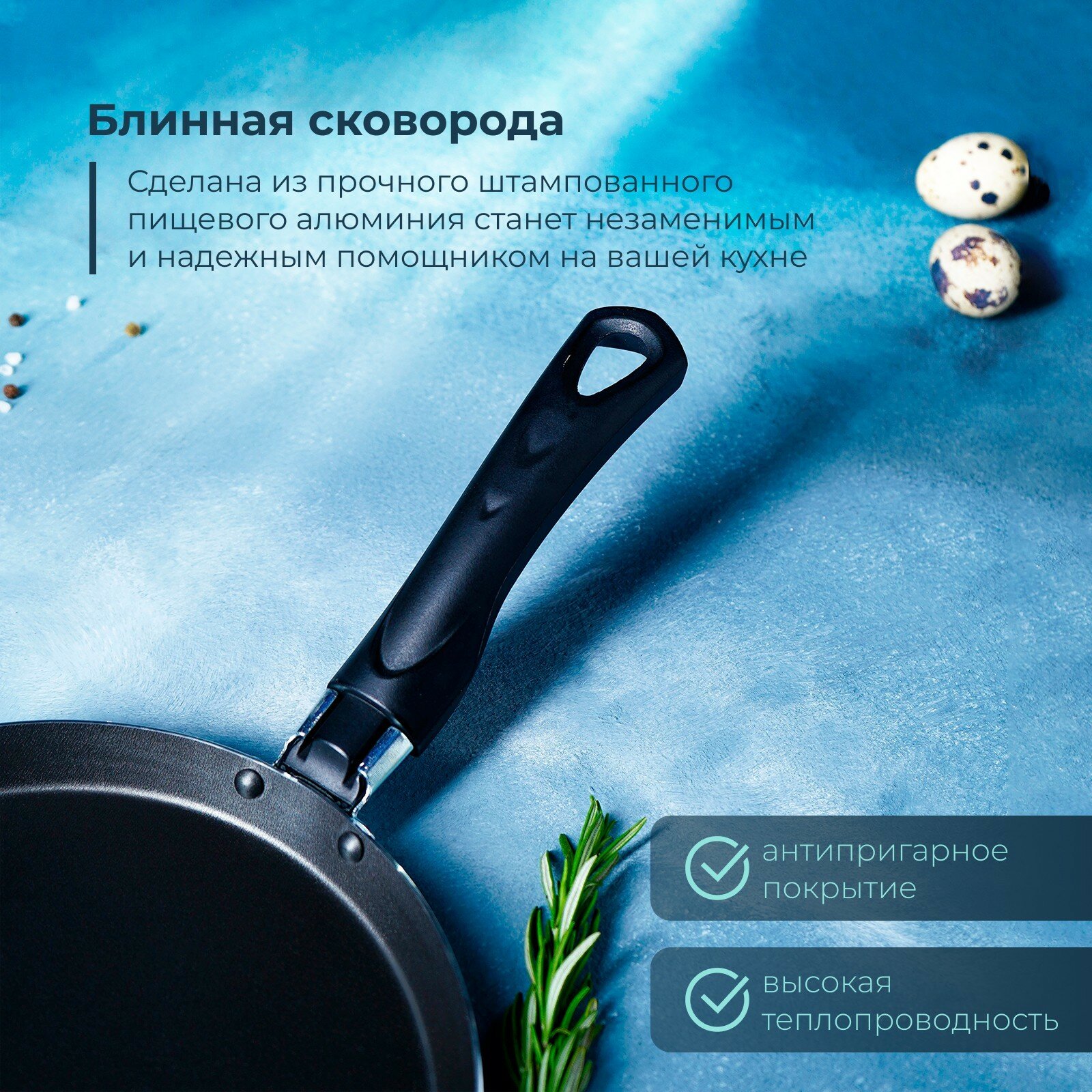 Сковорода блинная Доляна Promo, d=22 см, пластиковая ручка, антипригарное покрытие, цвет бордовый (1 шт.)