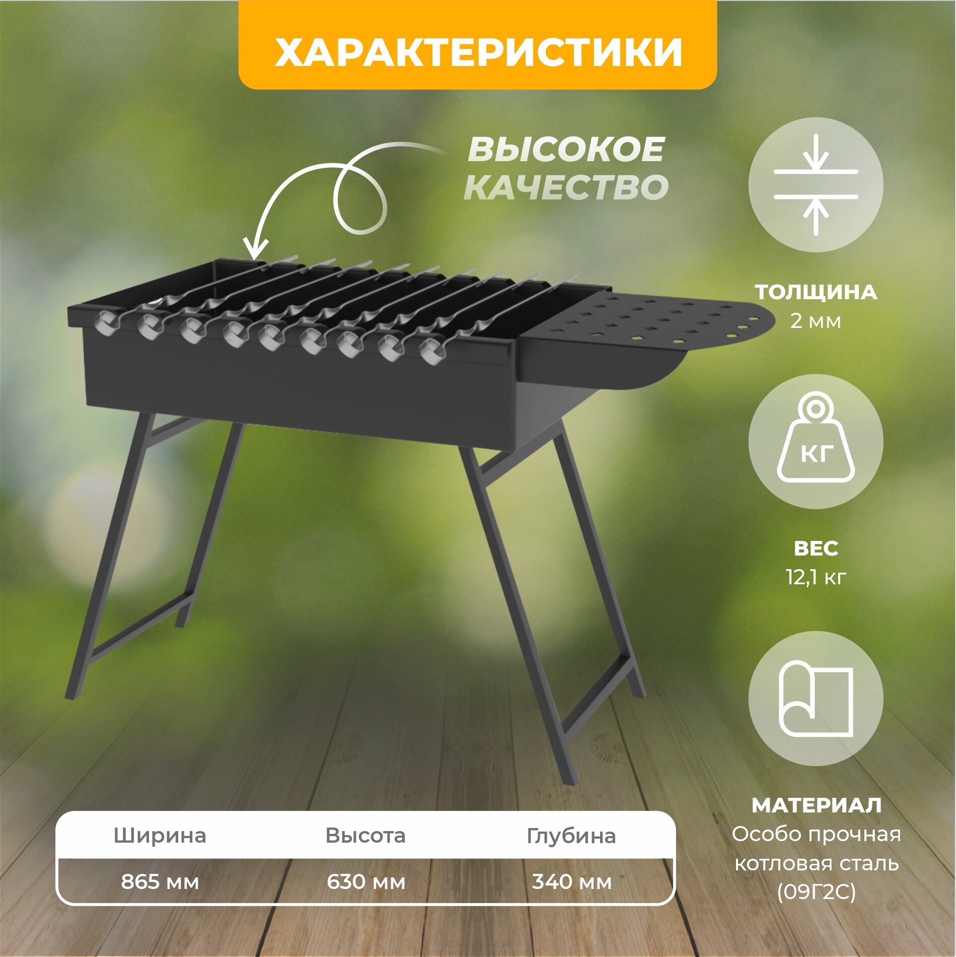 | Минусы: | низкие ножки, если неравномерно жечь дрова (с одной из сторон) каркас деформируется |