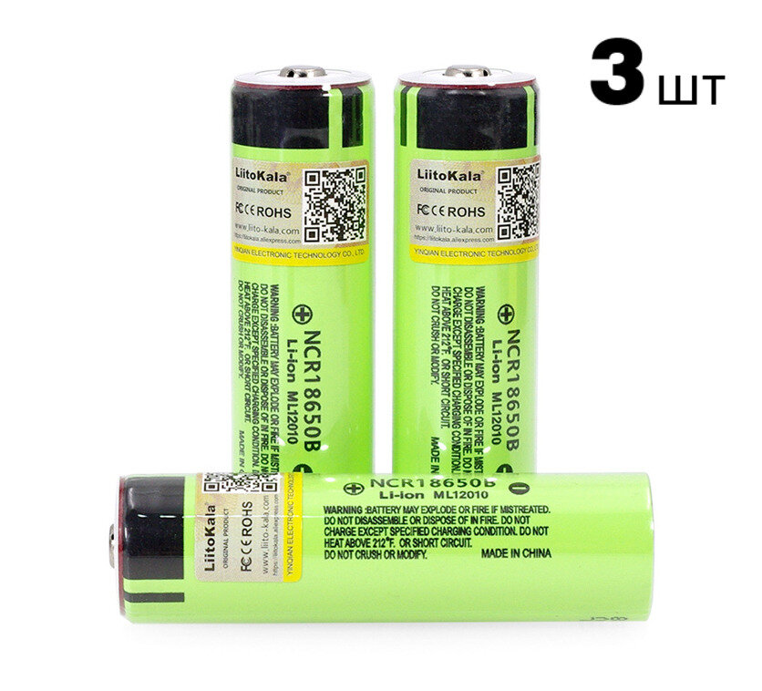 Аккумулятор 18650 LiitoKala ёмкостью 3400mAh (NCR18650B), 3 шт