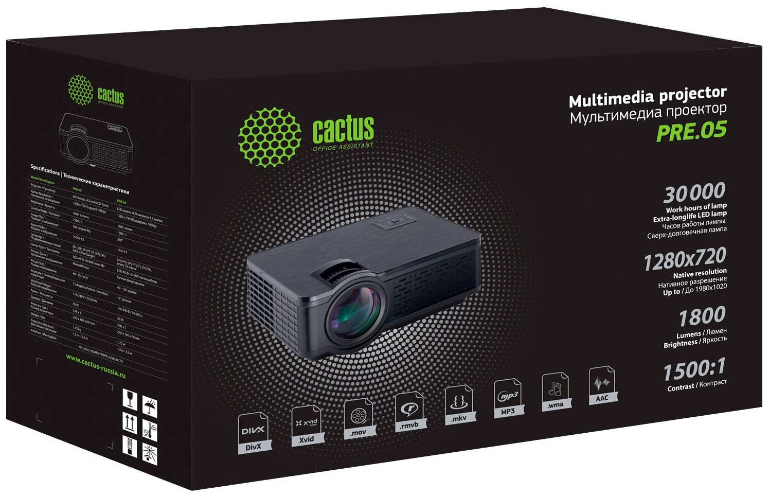 Проектор cactus CS-PRE.05WT.WXGA 1280x720, 1500:1, 1800 лм, LCD, 1.75 кг