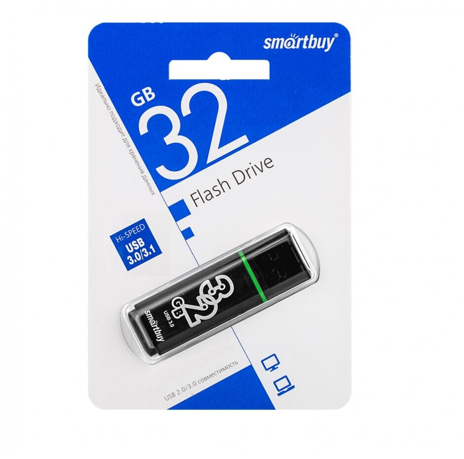 USB накопитель 32 GB Smart Buy Glossy Dark Grey 3.0 интересное: