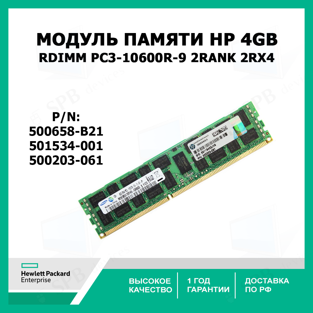 Оперативная память HP 500658-B21 4G 1333MHz DDR3 RDIMM 2Rx4 PC3-10600 CAS-9 ECC Registered серверная 501534-001 500203-061 500658-B21