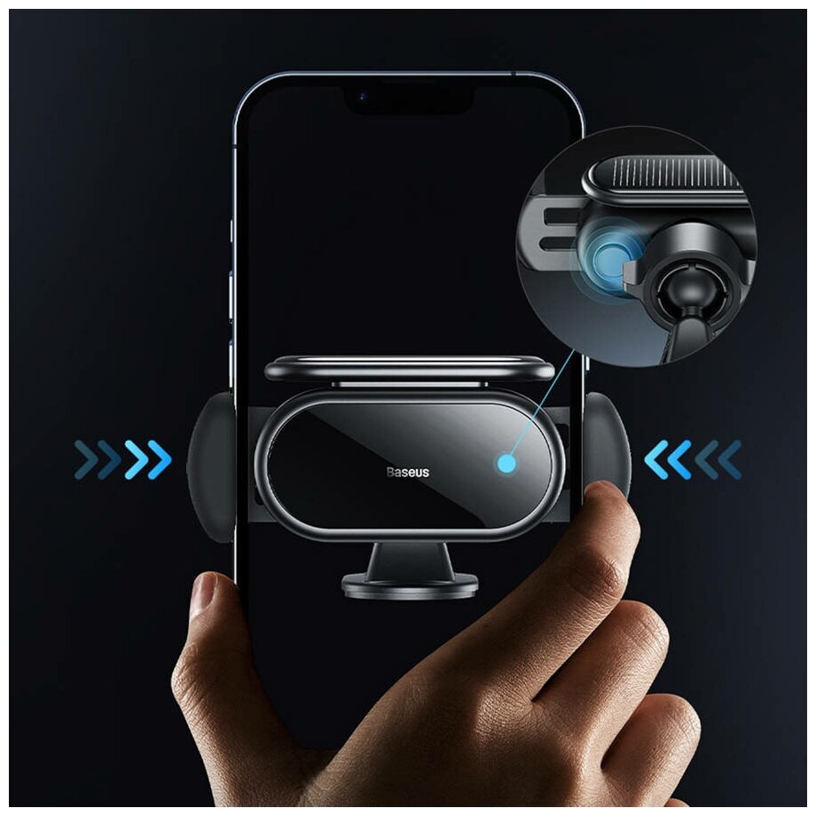 Держатель автомобильный Baseus автоматический с солнечной батарей - черный
