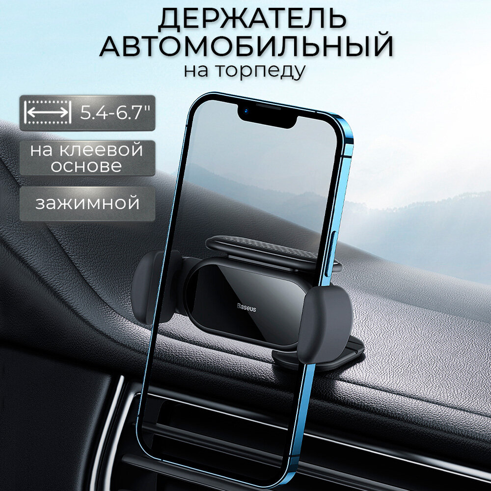 Держатель для телефона автомобильный автоматический в машину на приборную панель Baseus для iPhone, Android смартфонов, цвет черный