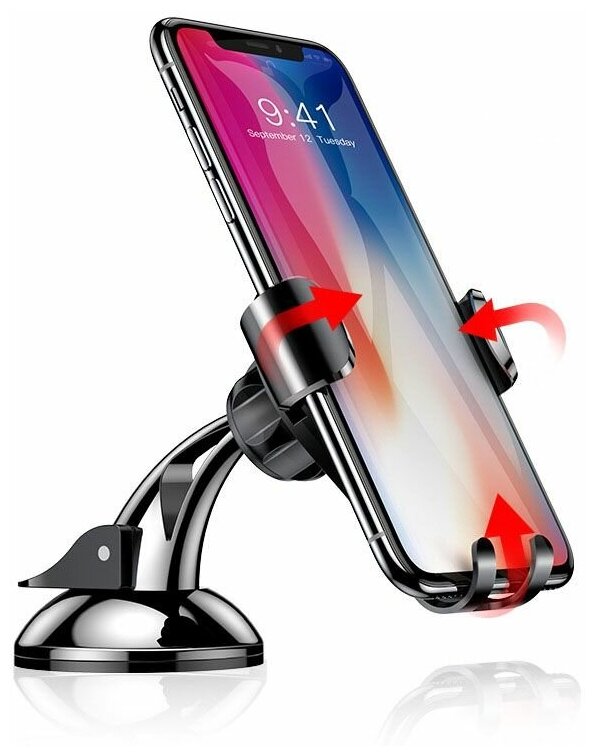 Автомобильный держатель для телефона Baseus черный зажимной на присоске / Базеус интересное: