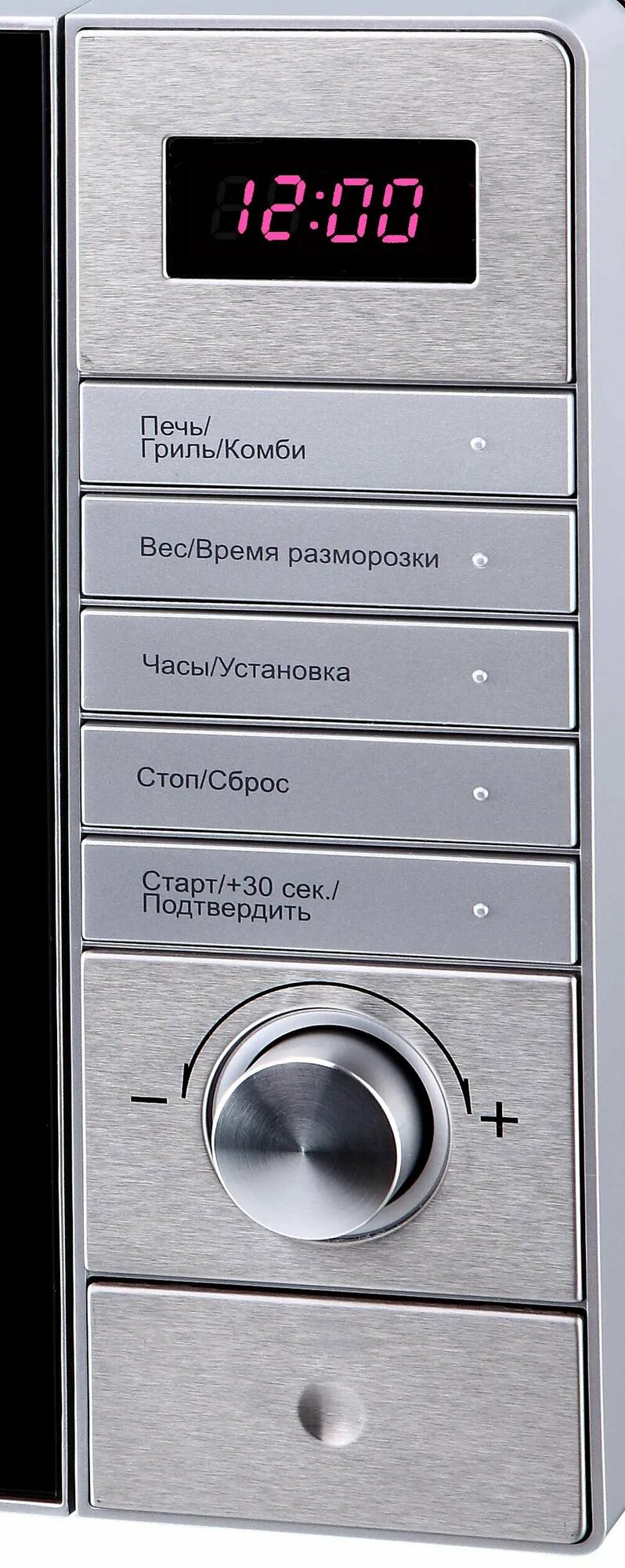 | Минусы: | Неудобное управление. Запустив процесс разогрева, скорректировать время крутилкой уже нельзя - только прибавить +30 секунд кнопкой или приостановить/остановить процесс полностью.