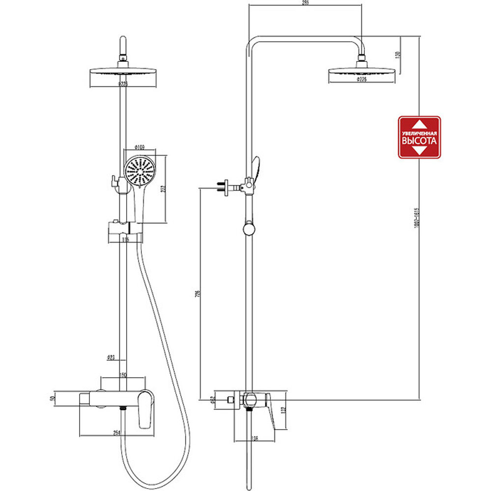 | Особенности | держатель душевой лейки / регулируемый верхний душ |