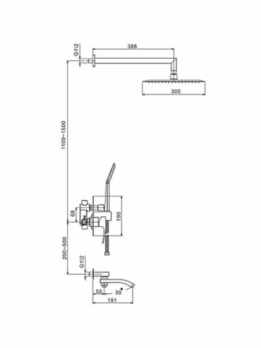 | Комплектация | ручной душ (душевая лейка) / верхний душ (тропический) / Смеситель / излив / душевой шланг / крепление ручного душа / настенный кронштейн |