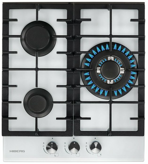 Газовая варочная поверхность HIBERG VM 4534 W, 3 конфорки, электророзжиг, газ-контроль, белый
